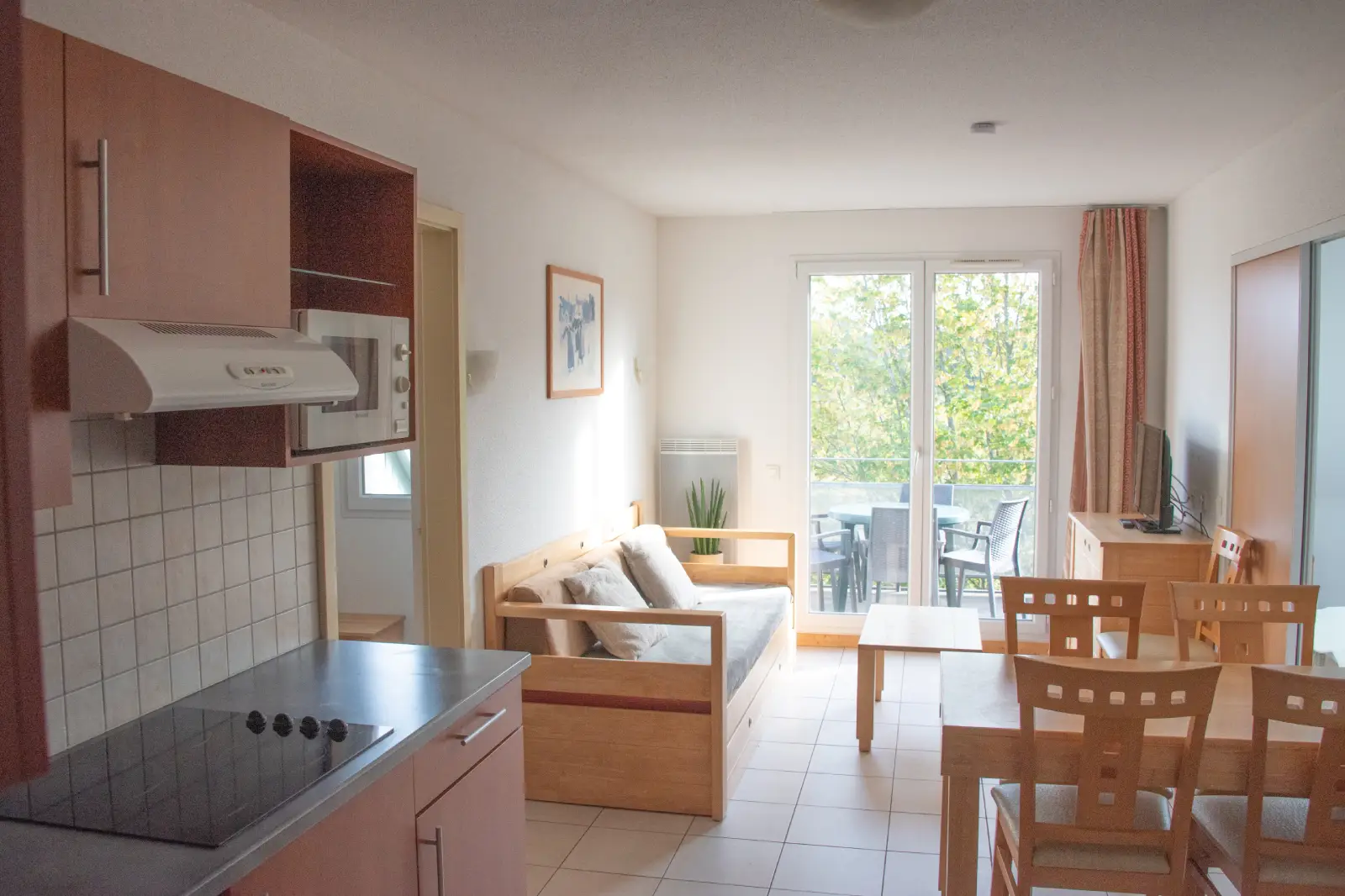Le Royal vous propose son appartement Family, Chambre avec un lit double. Salon avec un canapé-lit pour 2 personnes. Chambre avec 2 lits simples. Kitchenette équipée (plaque vitrocéramique, réfrigérateur, micro-ondes, lave-vaisselle) Salle de bain avec baignoire à écran de douche équipée, porte serviette électrique WC séparé Balcon ou terrasse 6m².